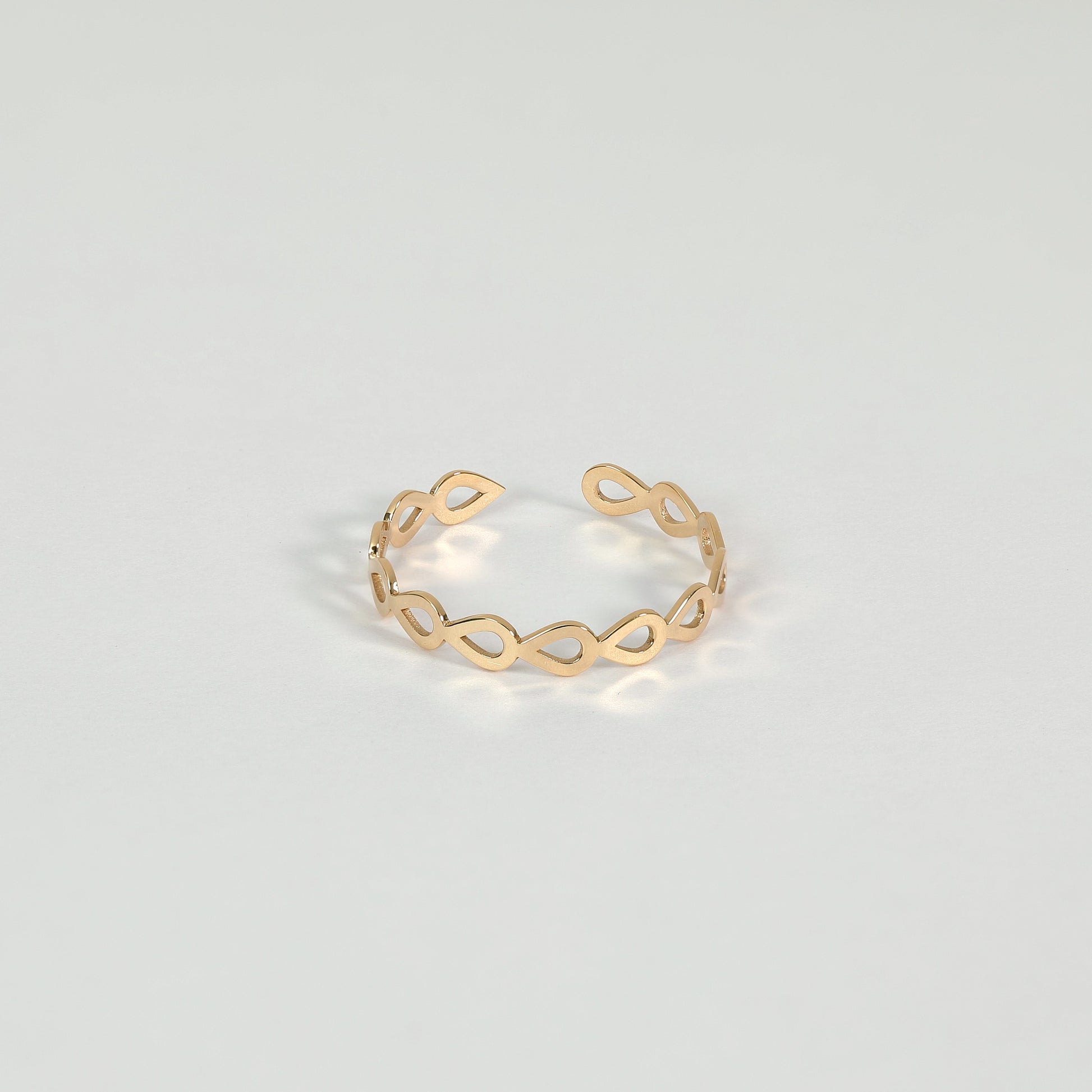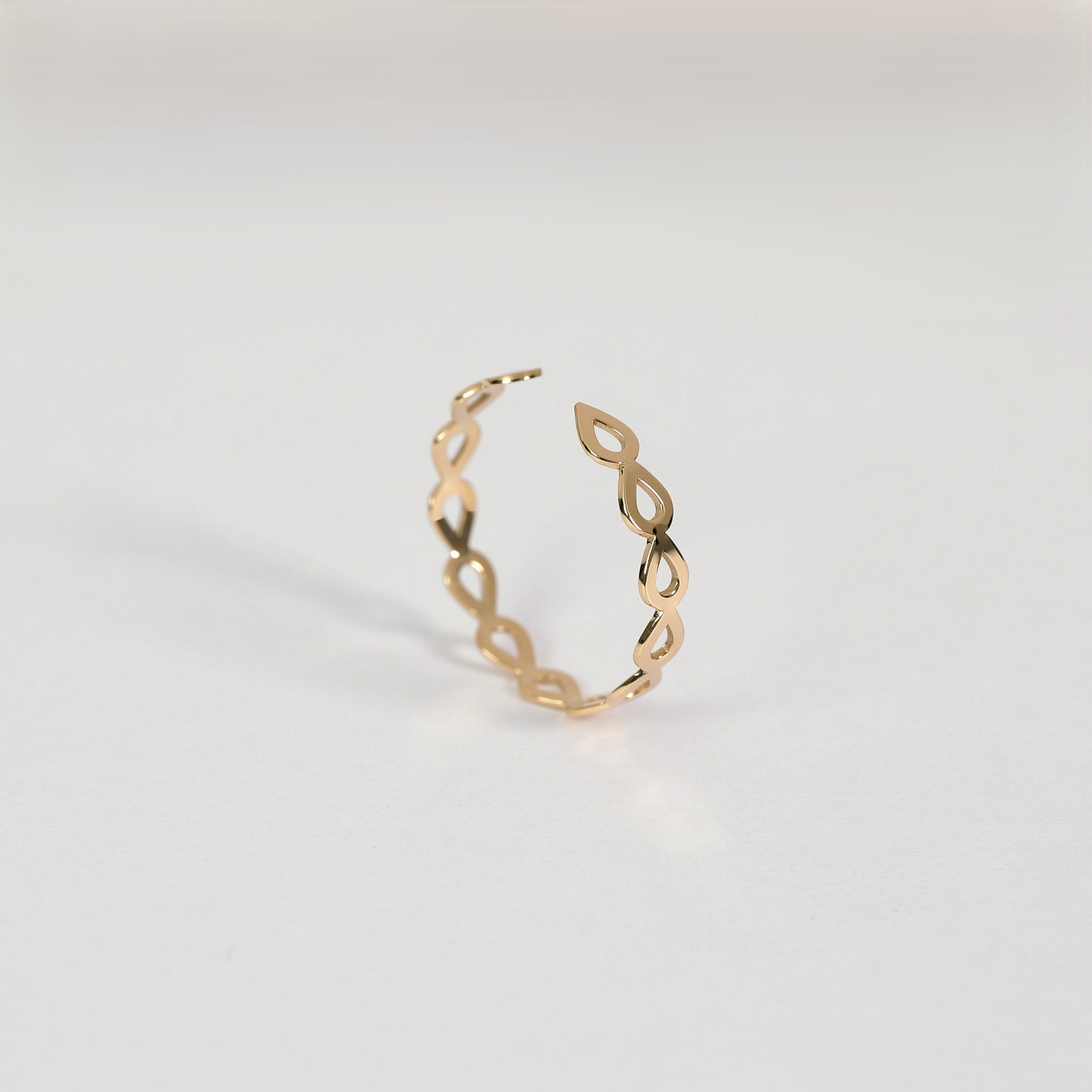 連続した丸にくり抜いたつけ心地の軽いリング。
